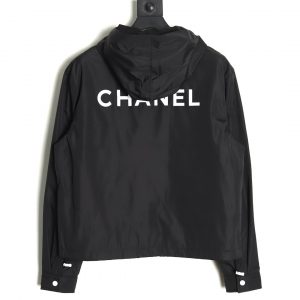 Chanel Retro Zip-up Hooded Windbreaker With Embroidered Slogan