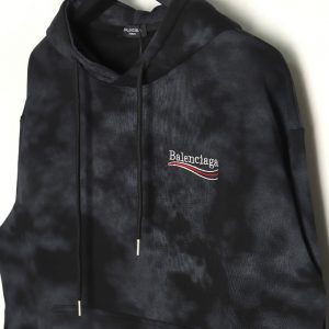 Balenciaga Mud-Dyed Distressed Hoodie with Tail Embroidery in Black