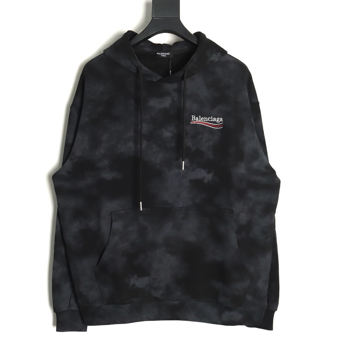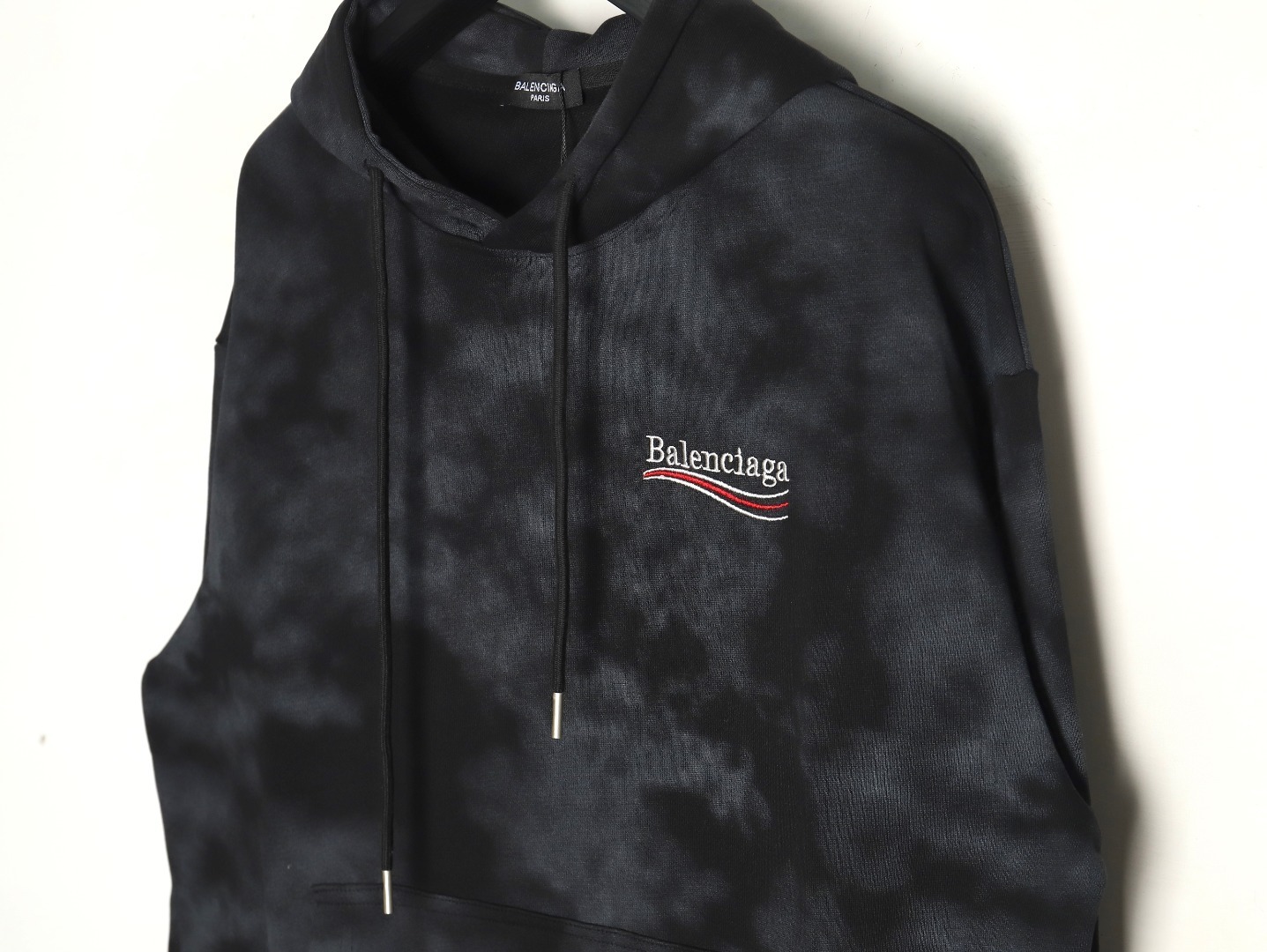 Balenciaga Mud-Dyed Distressed Hoodie with Tail Embroidery in Black