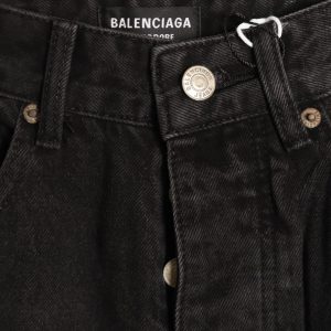 Balenciaga Black Washed Wide Leg Baggy Jeans with Embroidered Lettering