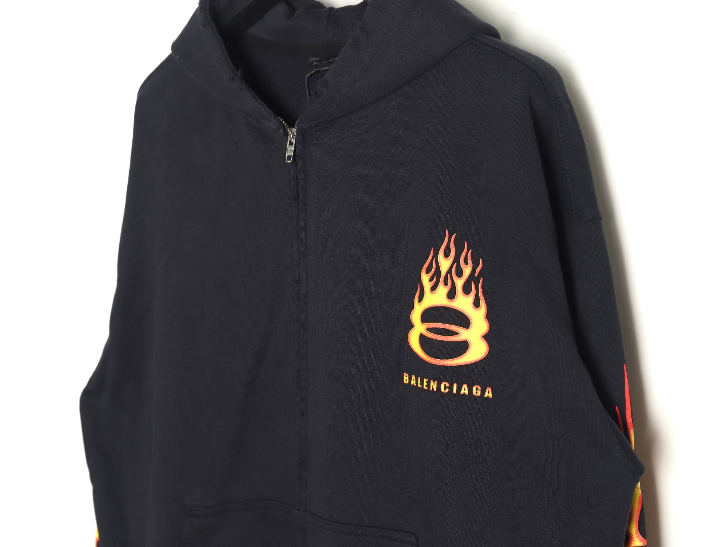Balenciaga Double Hoop Flames Digital Direct Injection Washed Distressed Zip Up Hoodie