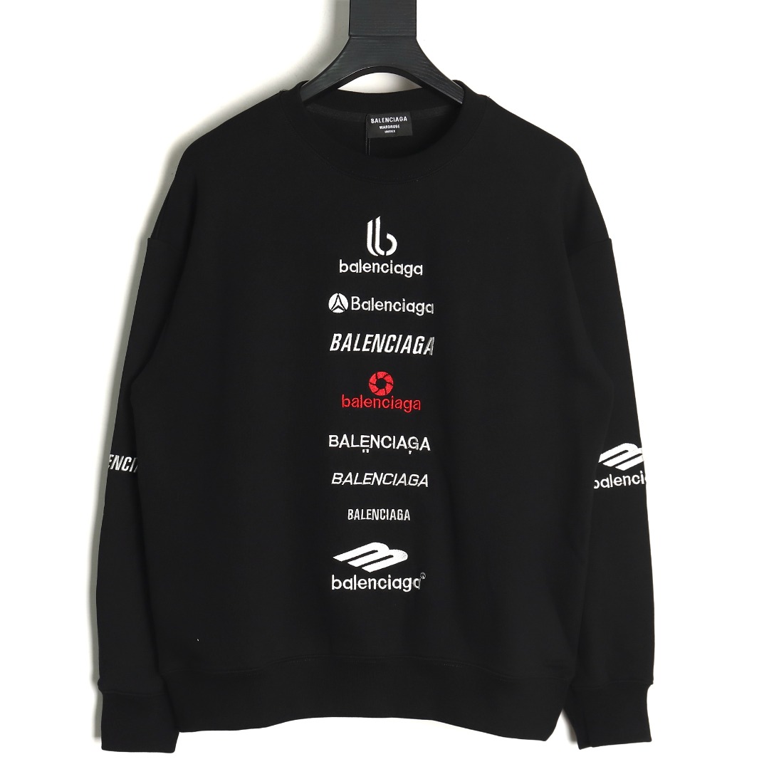 Balenciaga Multi-Letter Embroidery Crewneck Sweatshirt Black