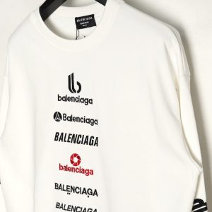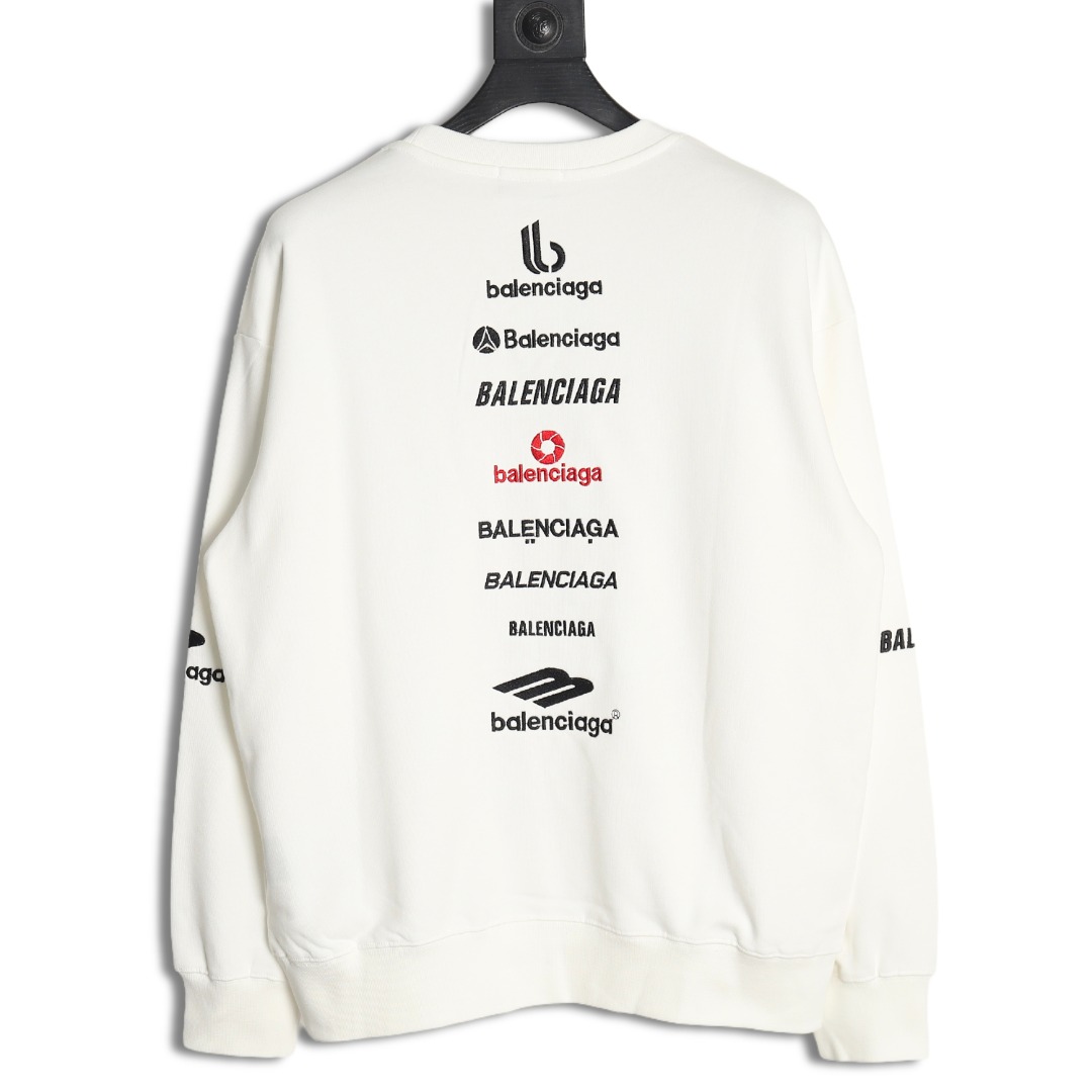 Balenciaga Multi-Letter Embroidery Crewneck Sweatshirt White