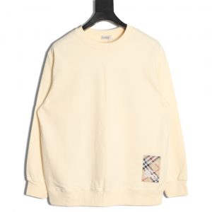Burberry Crew Neck Sweatshirt with Plaid Letter Embroidery and Patch Label
