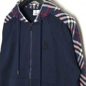 Burberry Embroidered TB Plaid Splicing Zip-up Sweatshirt Jacket