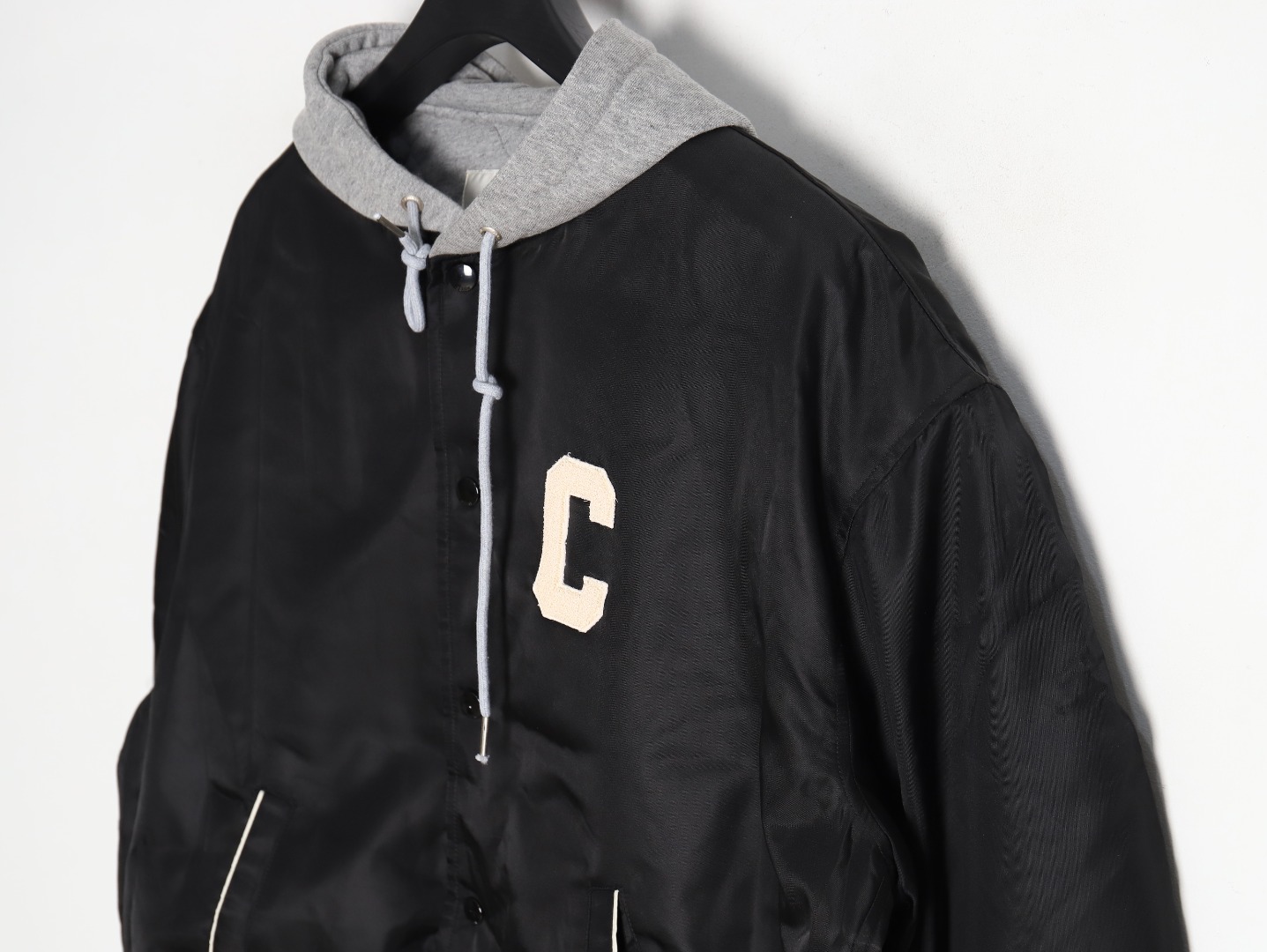 Celine new hooded cotton jacket with embroidered letters Black
