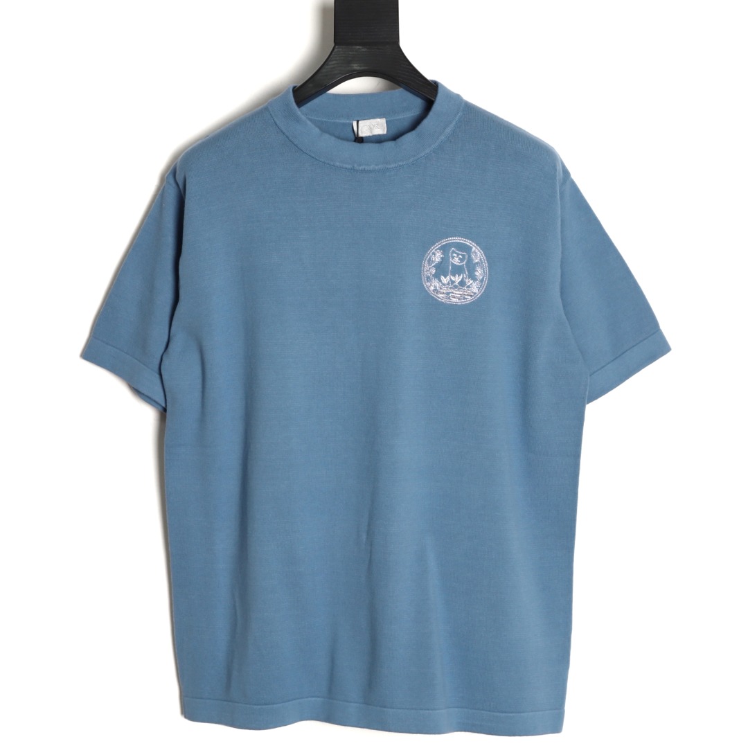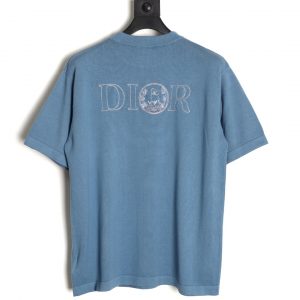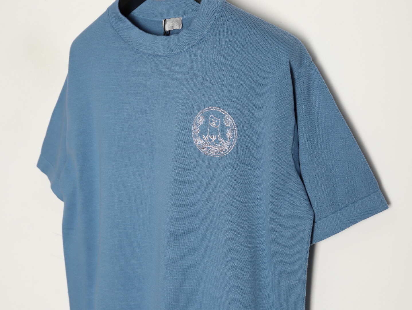 Dior Blue Knitted Sweater with Cat Embroidery, Short Sleeves