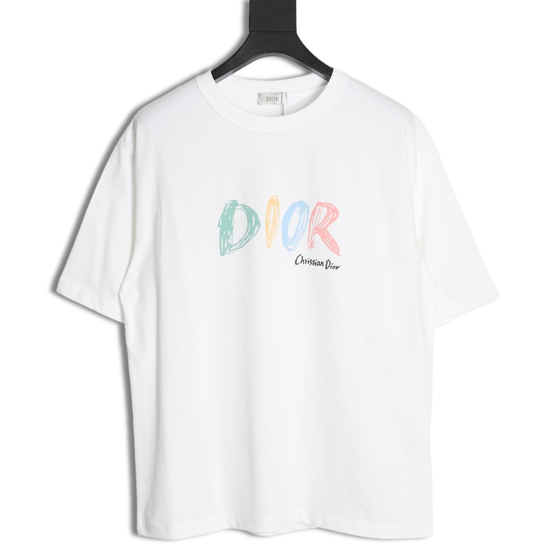Dior color letter digital printing round neck short sleeve