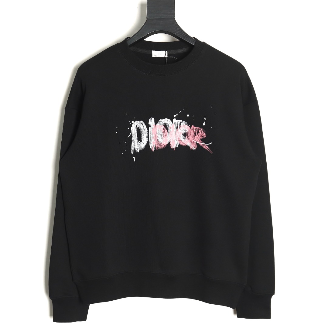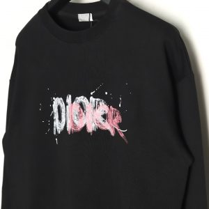Dior Hand Painted Graffiti Ink Letter Print Crew Neck Cropped Sweatshirt in Black