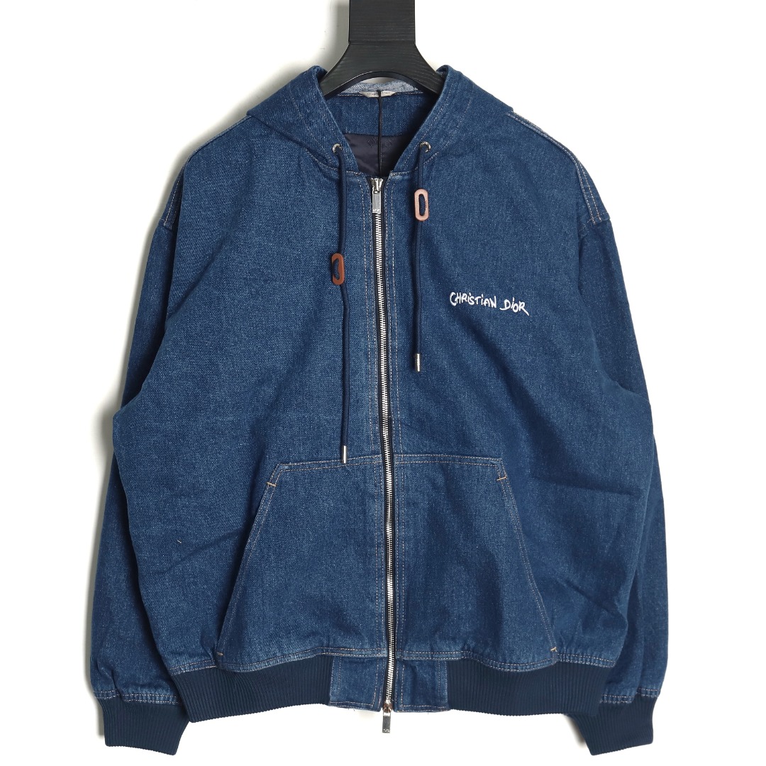 Dior Hooded Denim Jacket With Embroidered Dior Lettering