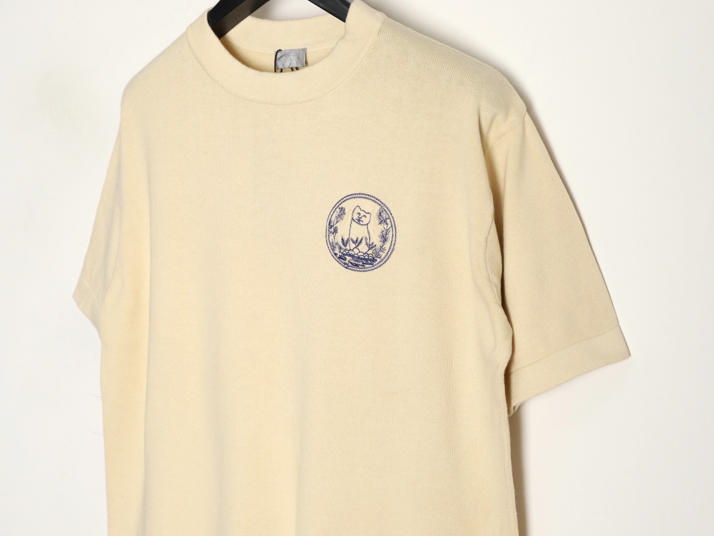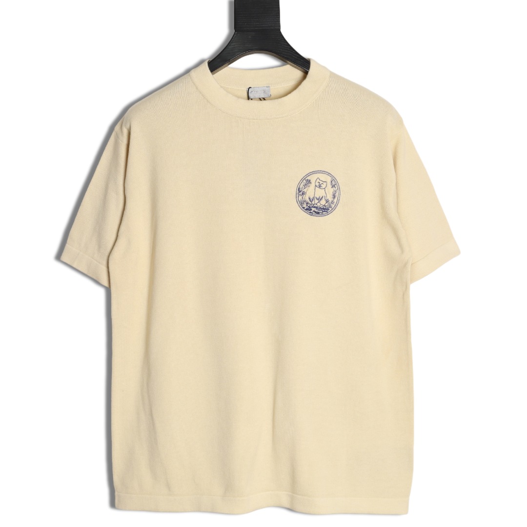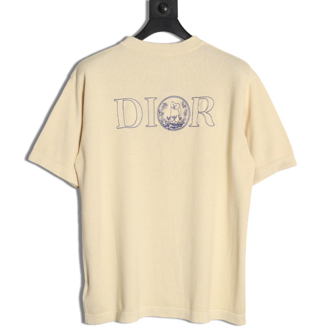 Dior Knitted Sweater with Cat Embroidery, Short Sleeves