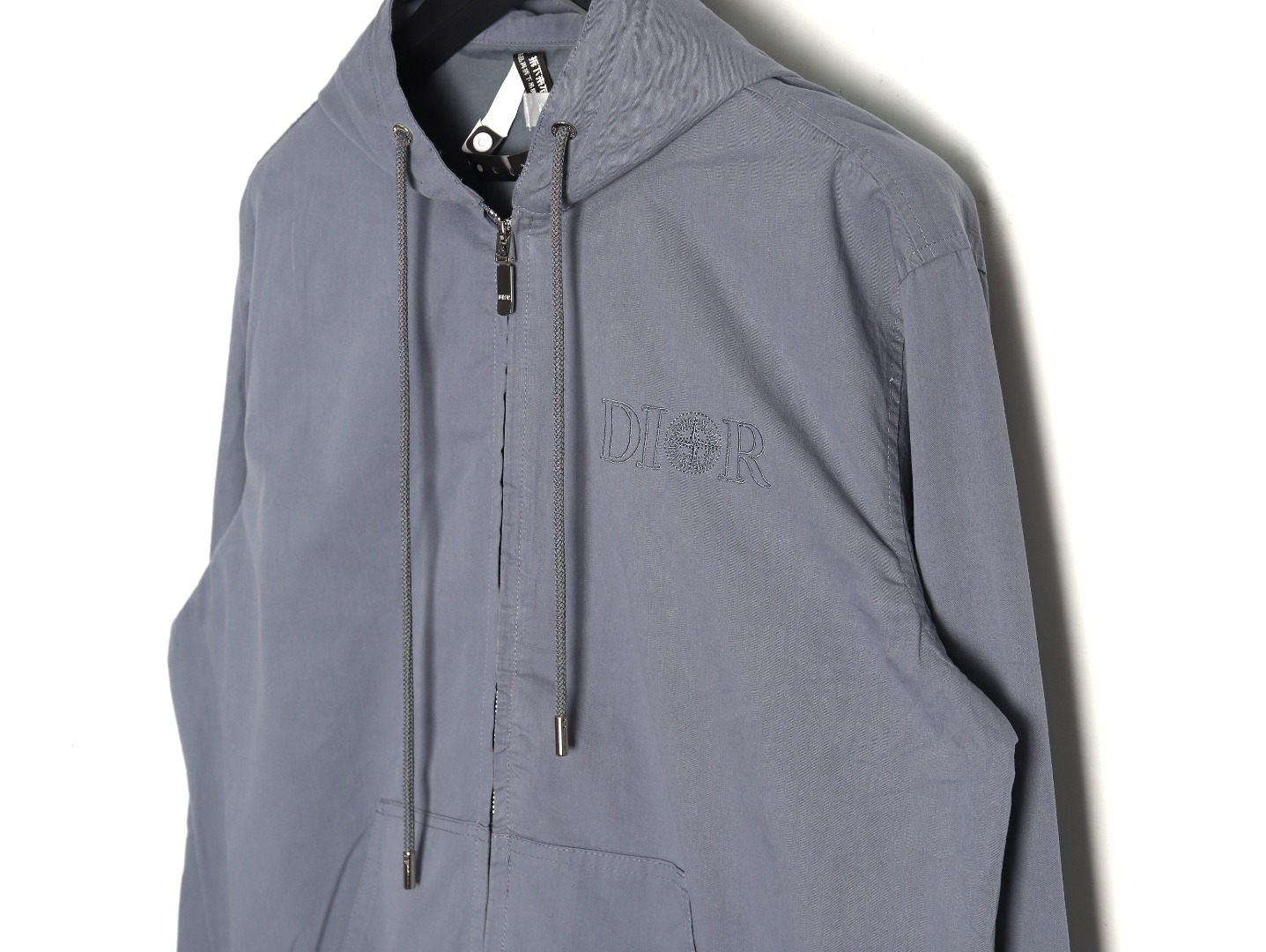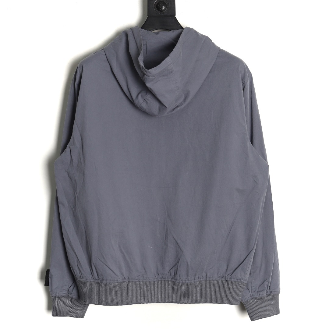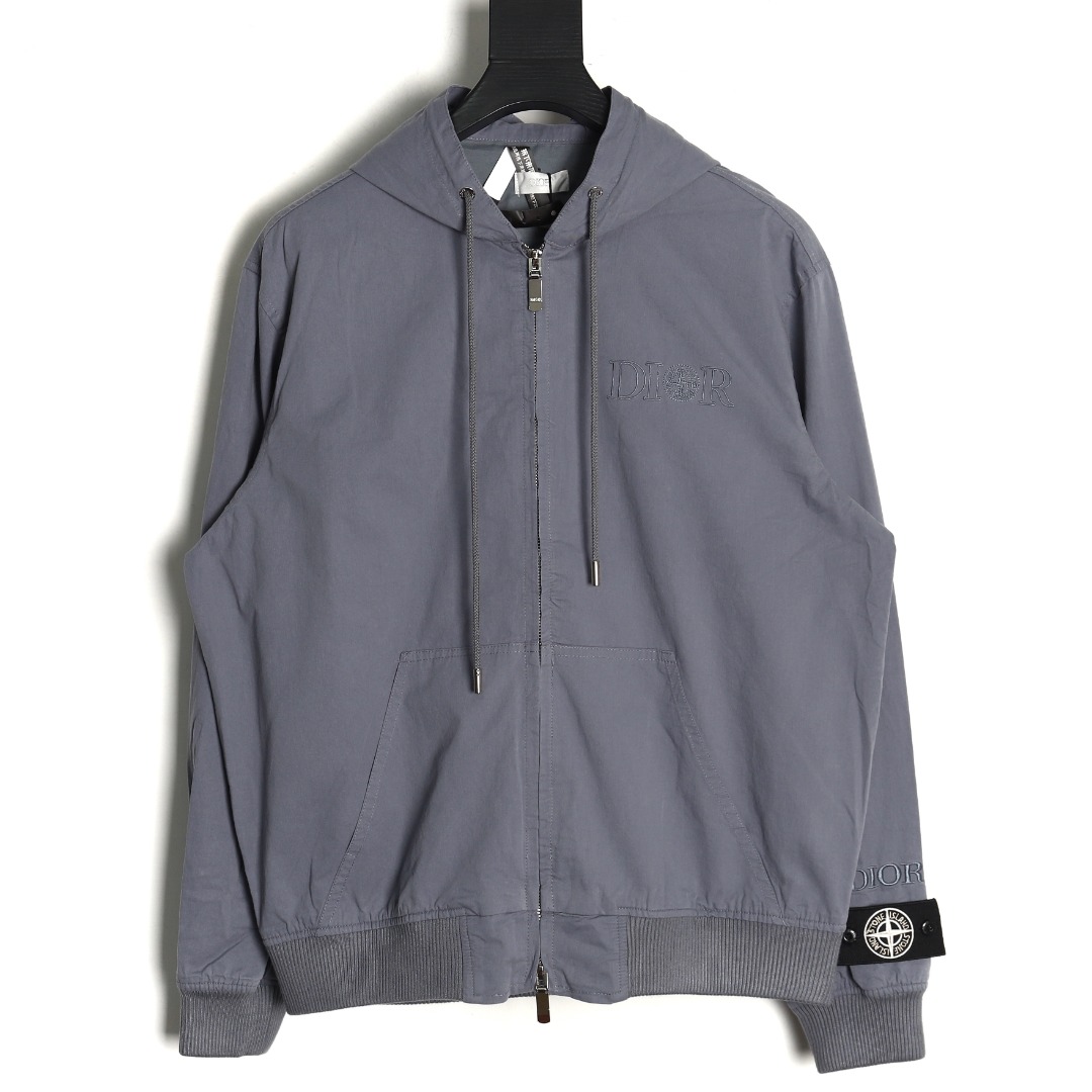 Dior & Stone Island Grey Windbreaker Jacket with Hood and Embroidered Lettering