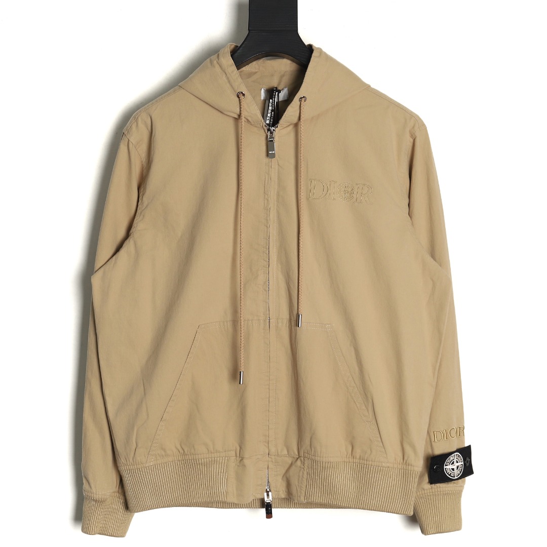 Dior & Stone Island Hooded Windbreaker Jacket with Embroidered Lettering