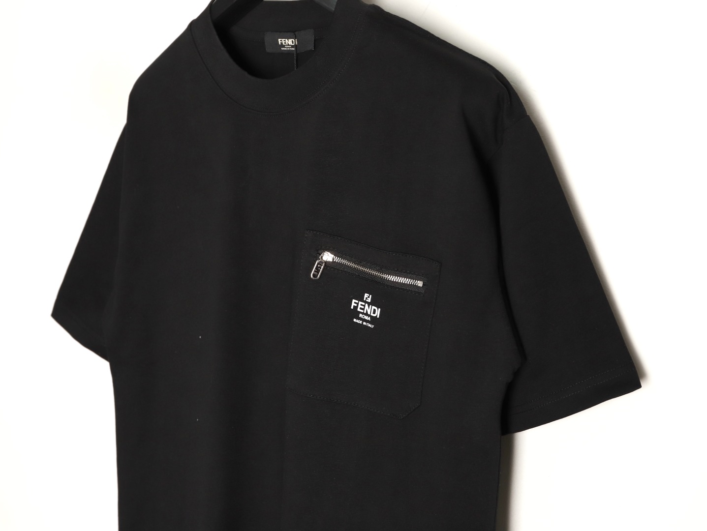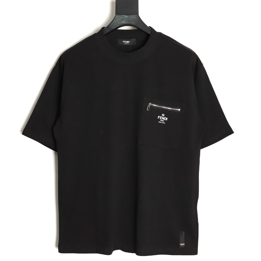 Fendi Black Lettering Logo short-sleeved T-shirt with Zip Pocket