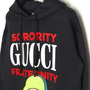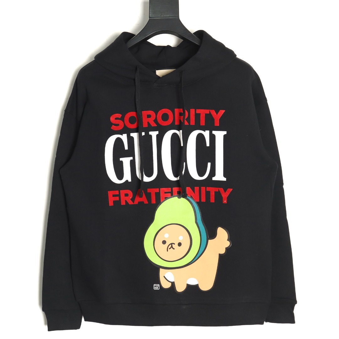 Gucci × kawaii Black Hoodie with Colorful Avocado Dog Design