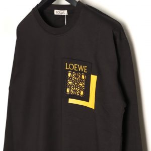 Loewe Long-Sleeved Black T-Shirt with Overlay Pocket and Hollow Logo