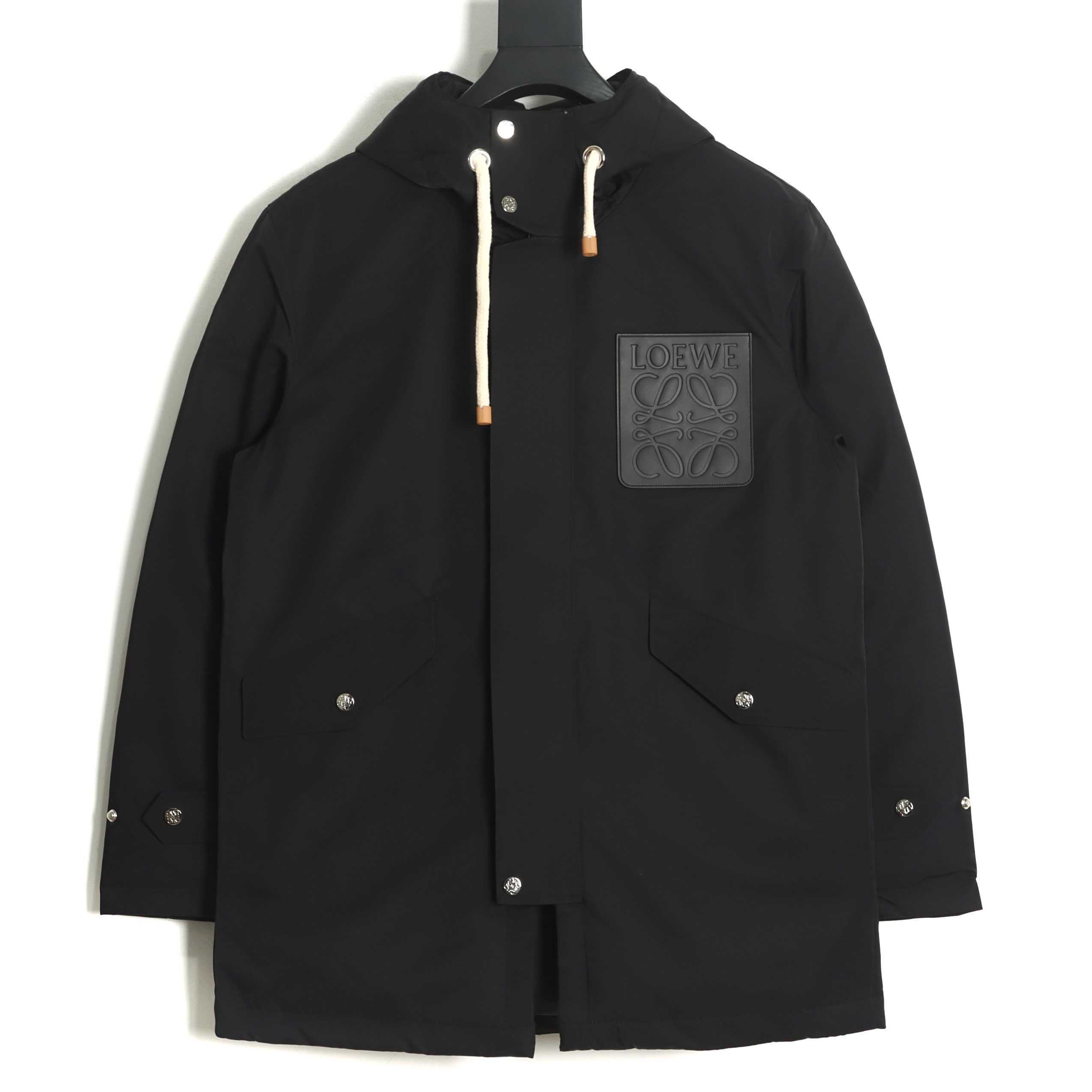 Loewe Mid-length Down Jacket with Hood and Leather Label