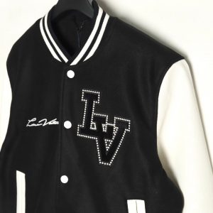 Louis Vuitton Black Diamond Letter Baseball Jacket