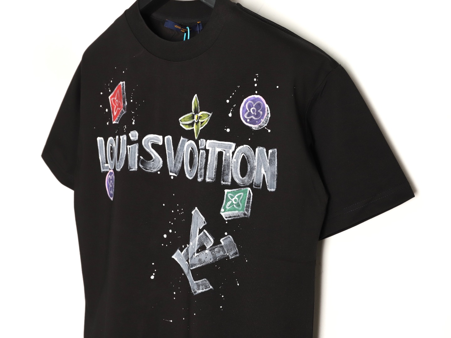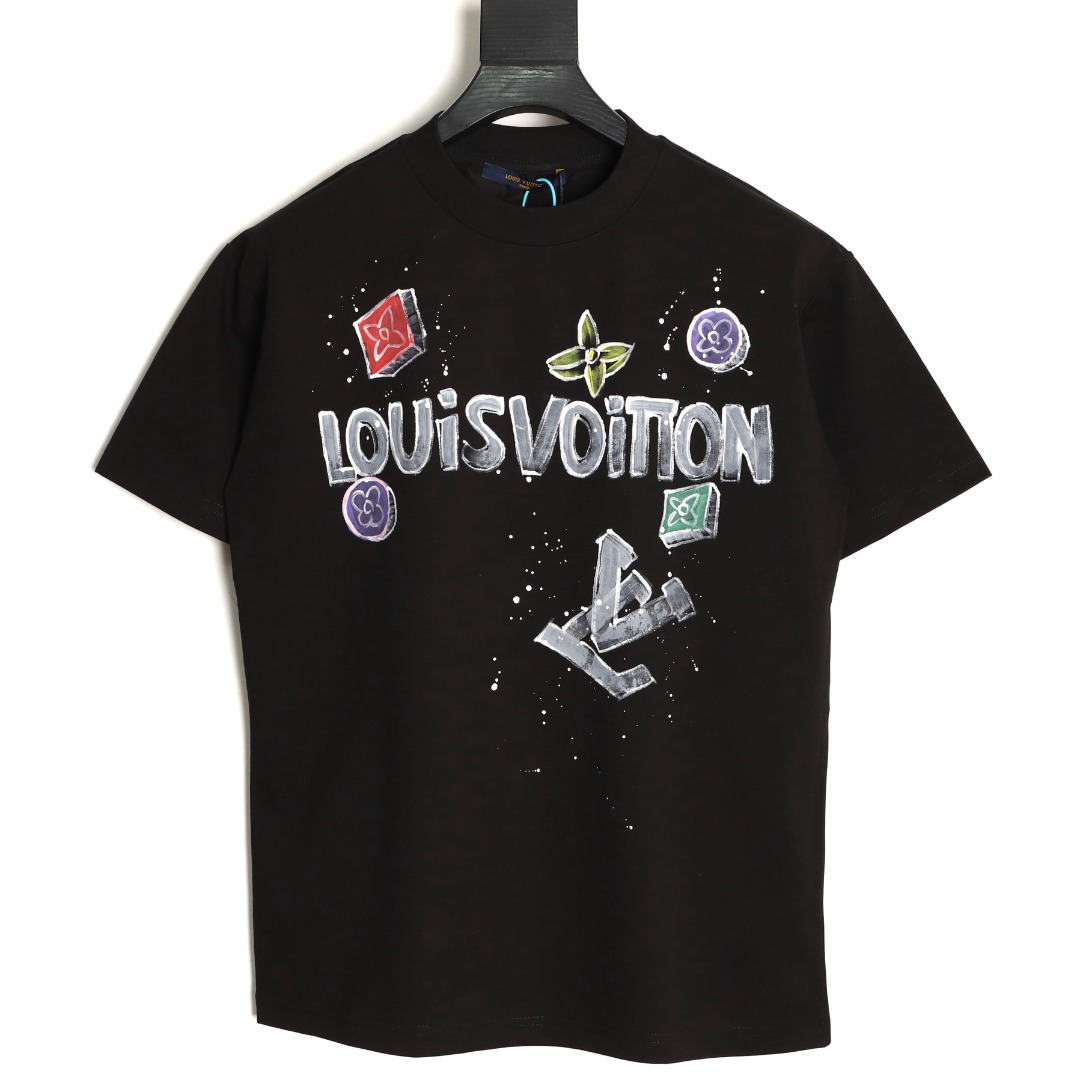 Louis Vuitton Black Hand-painted Short-sleeved T-shirt with Iconic Lettering