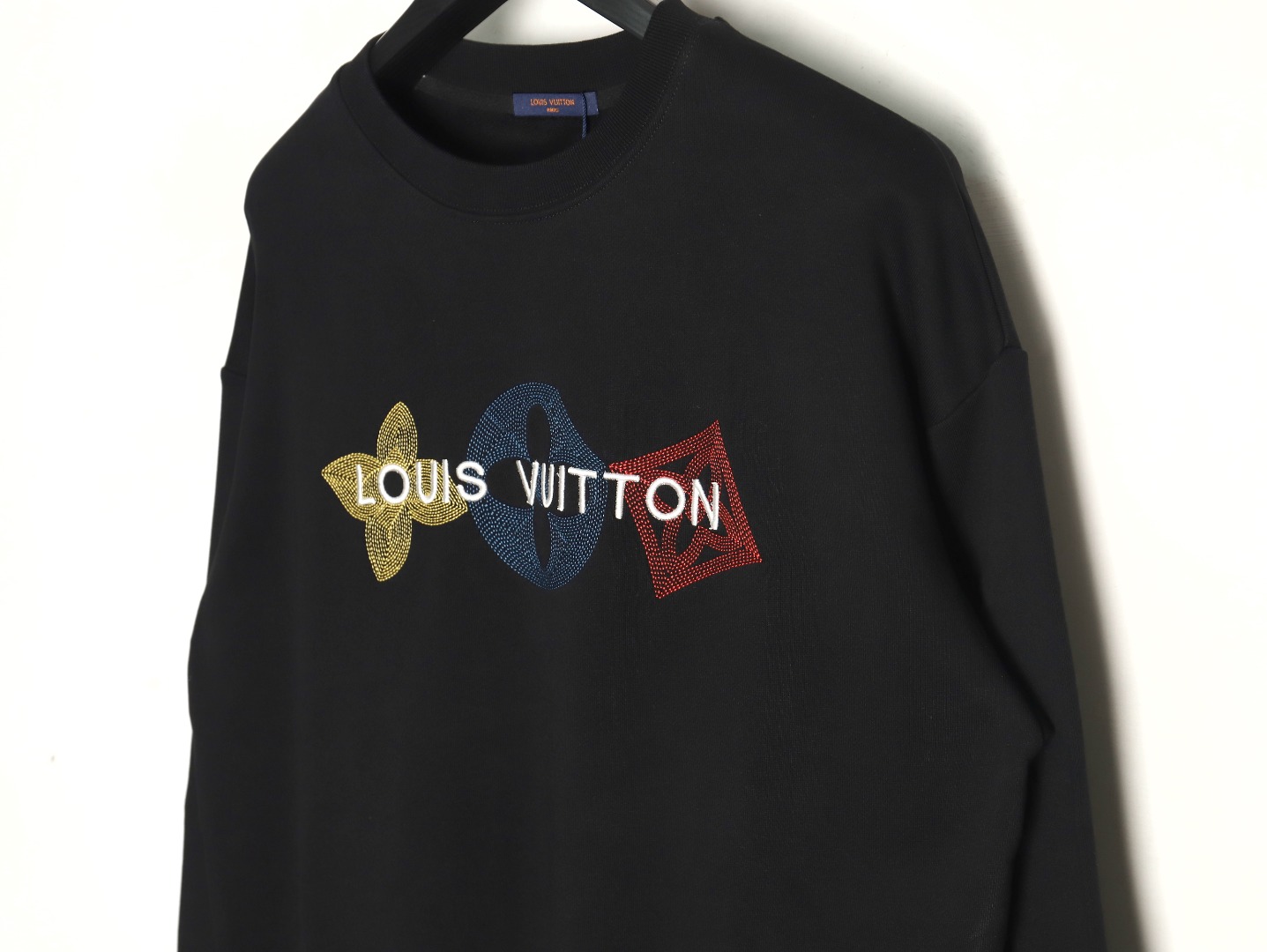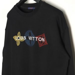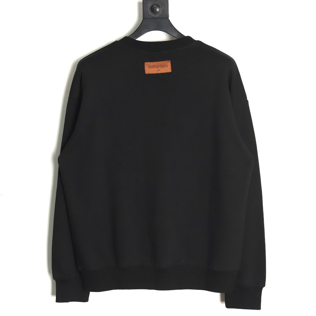 Louis Vuitton Classic Black Embroidered Four-leaf Clover Logo Crew Neck Sweatshirt