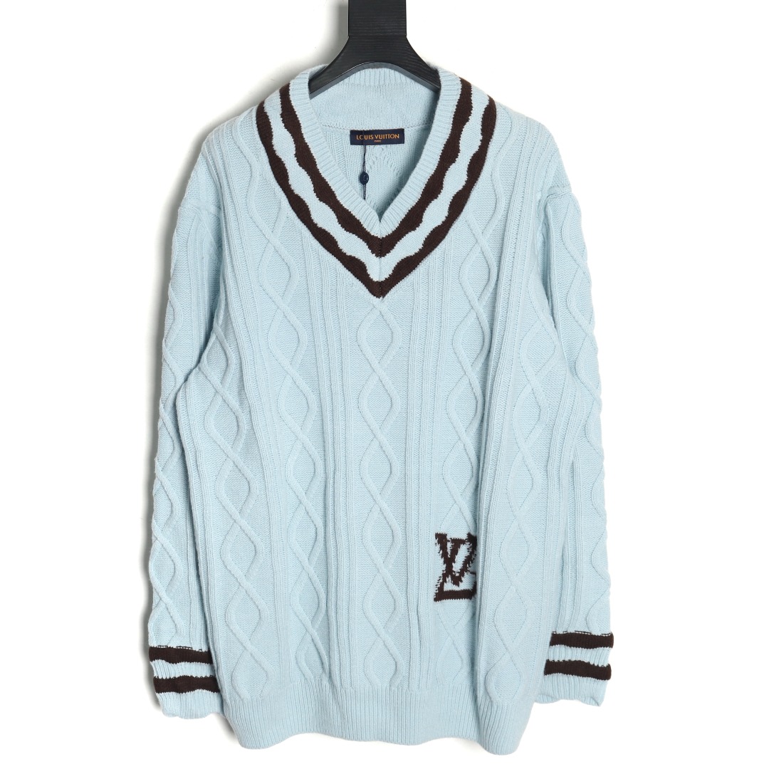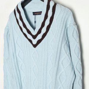 Louis Vuitton Color-coordinated Tridimensional Windowpane V-neck Sweater