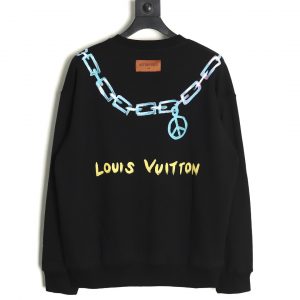 Louis Vuitton Gradient Necklace Pendant Print Crew Neck Black Sweatshirt