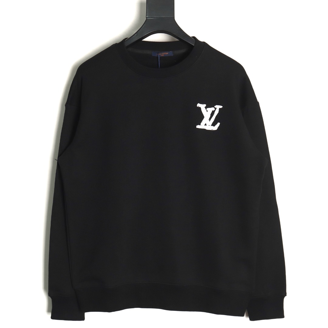 Louis Vuitton Hand Painted Graffiti Letters Logo Crew Neck Sweatshirt Black