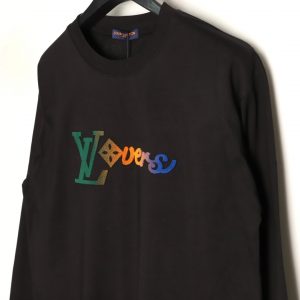 Louis Vuitton Long-sleeved T-shirt with Gradient Embroidered oothbrush Logo Black