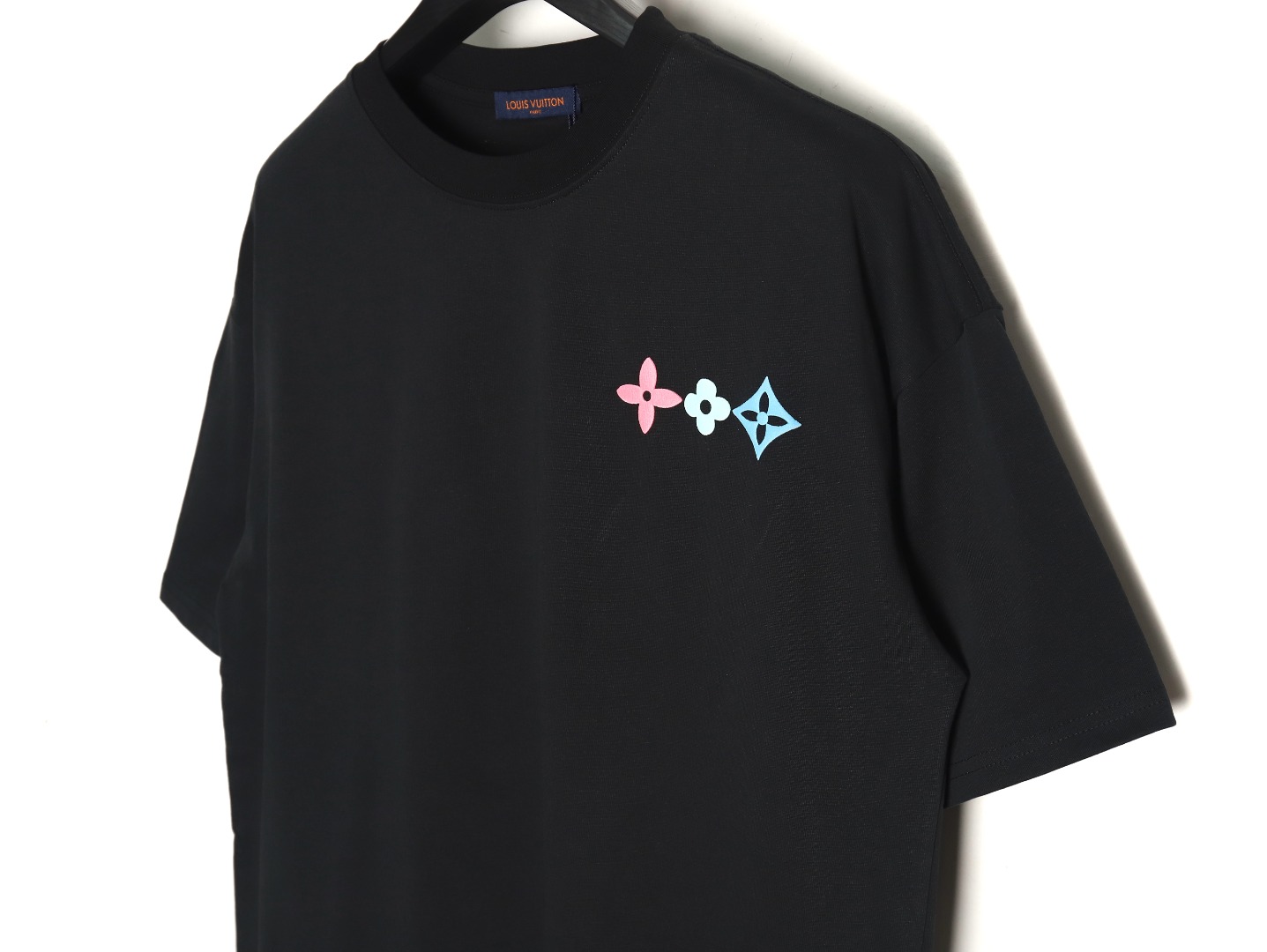 Louis Vuitton Short-sleeved T-shirt With Coloured Geometric Letter Print On The Back And Three Flowers
