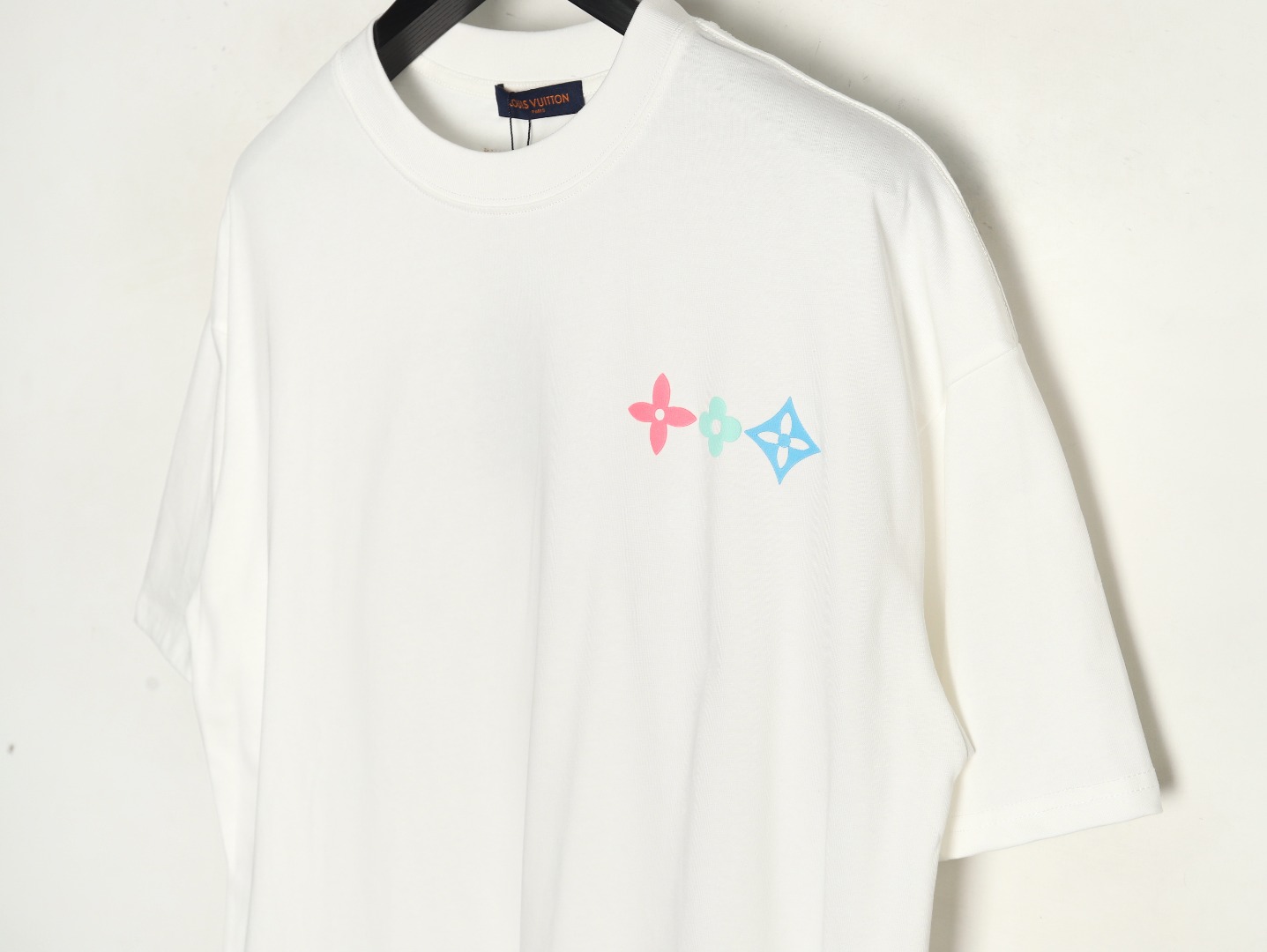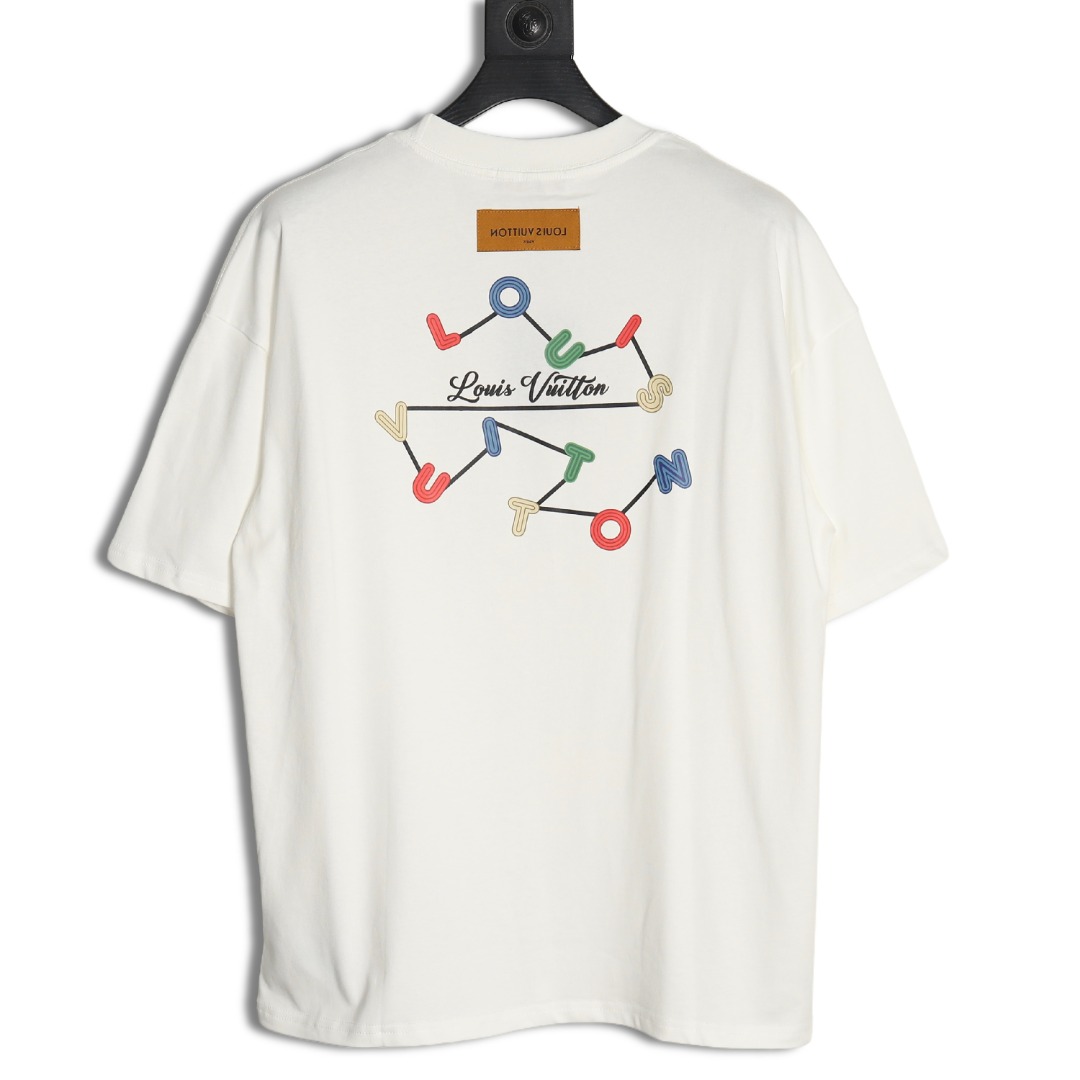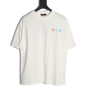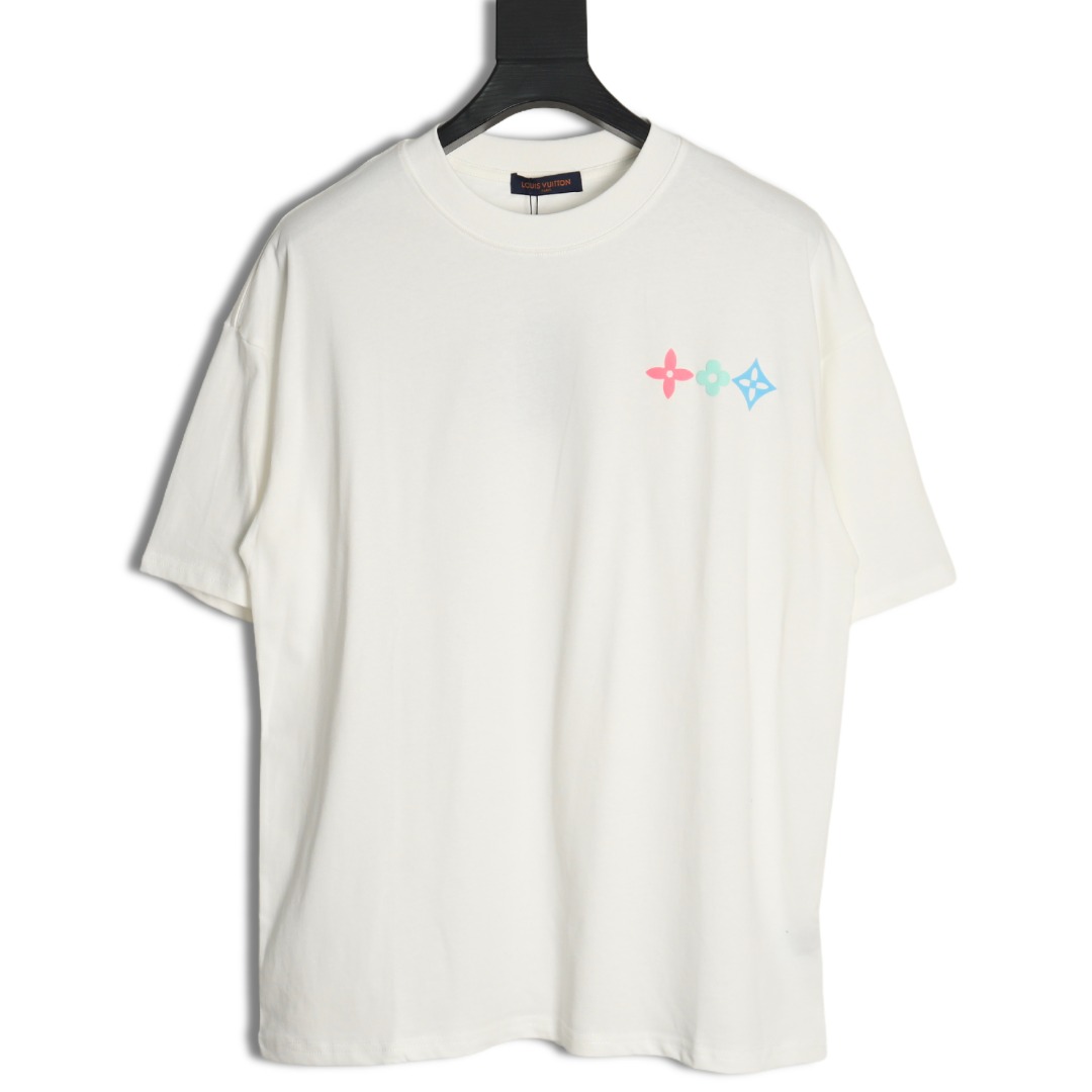Louis Vuitton Short-sleeved T-shirt With Coloured Geometric Letter Print On The Back And Three Flowers