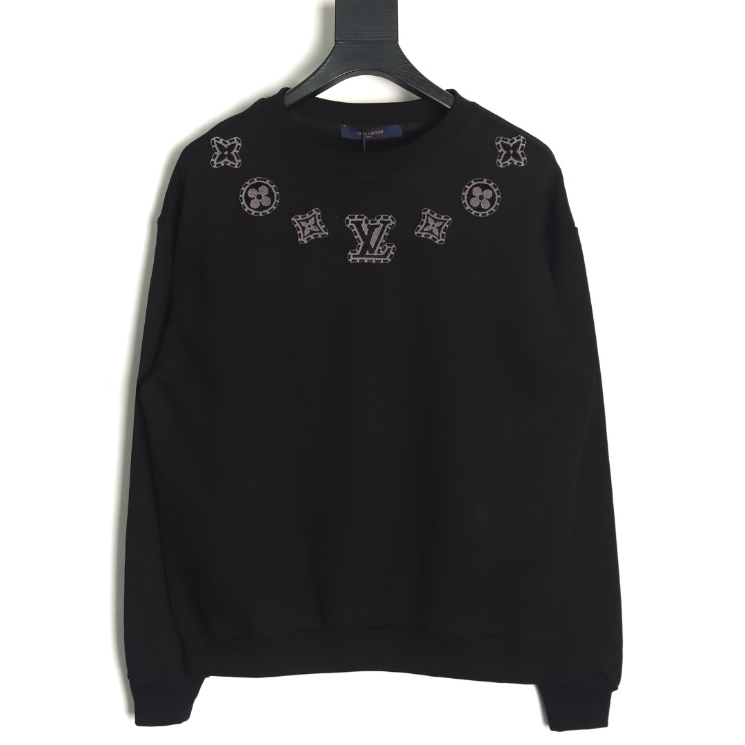Louis Vuitton Sweatshirt Black With Embroidered Logo Round Neck