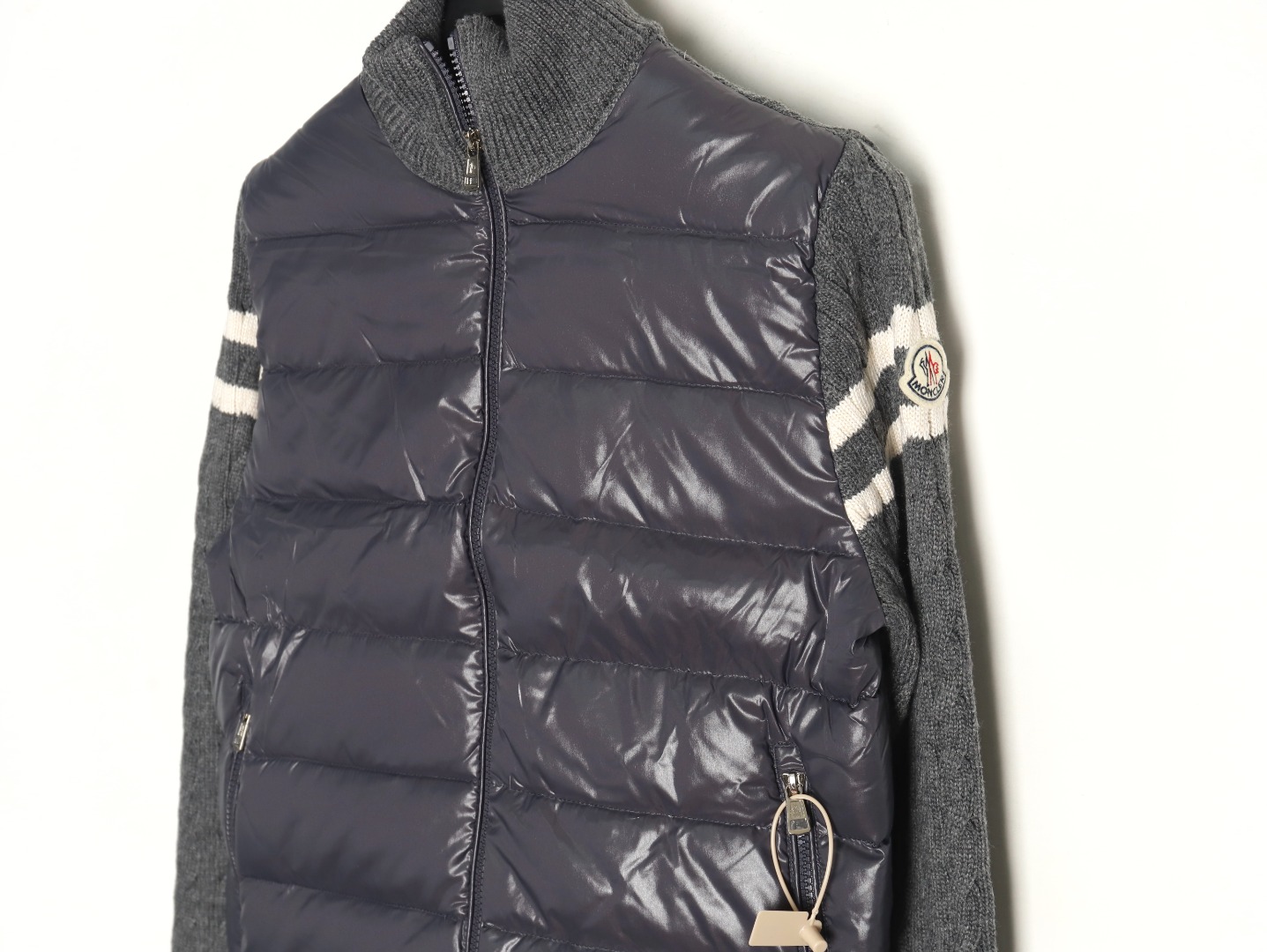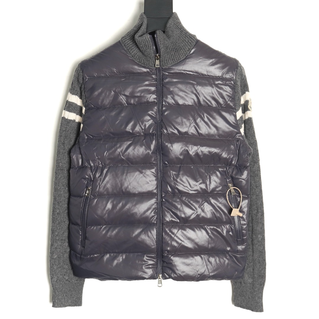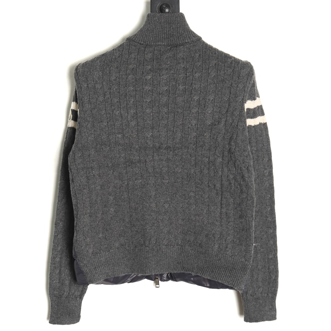 Moncler Grey Down Jacket with Wool Knit Stitching