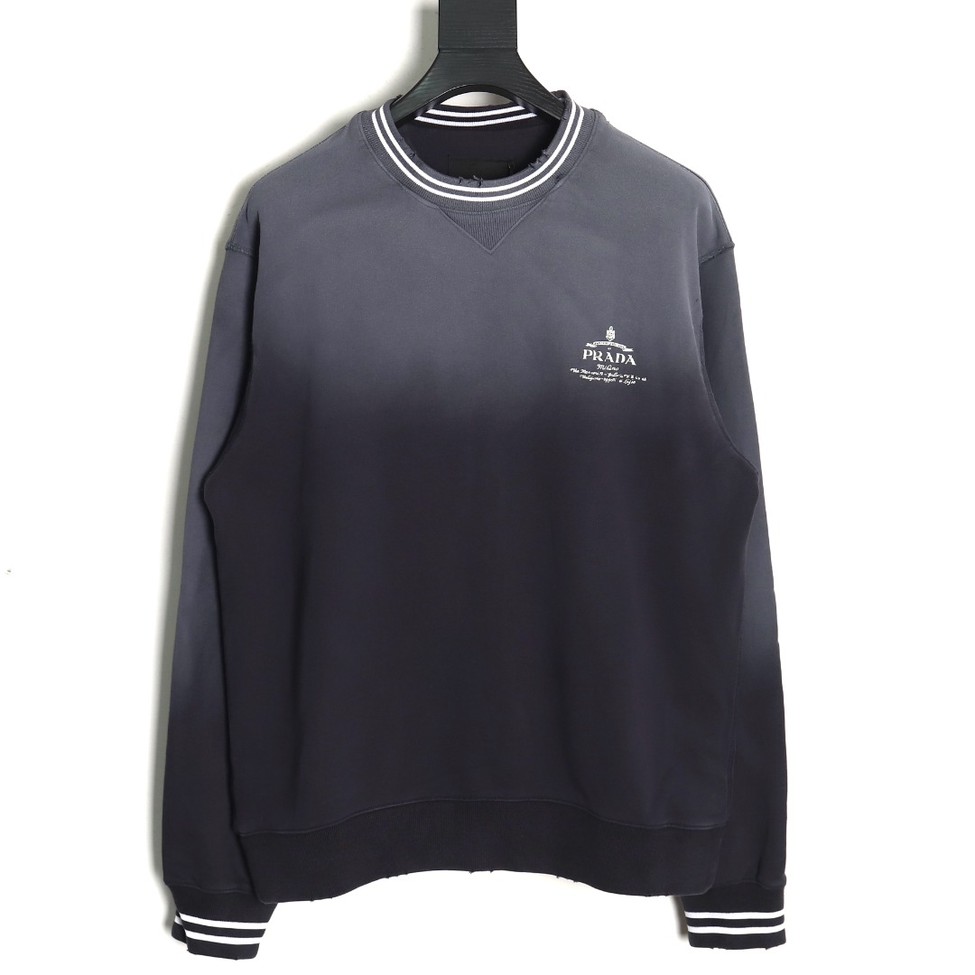 Prada Distressed Gradient Distressed Print Crew Neck Sweatshirt