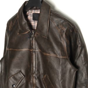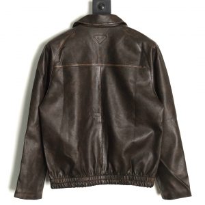 Prada Distressed Leather Jacket With Triangle Logo on The Back
