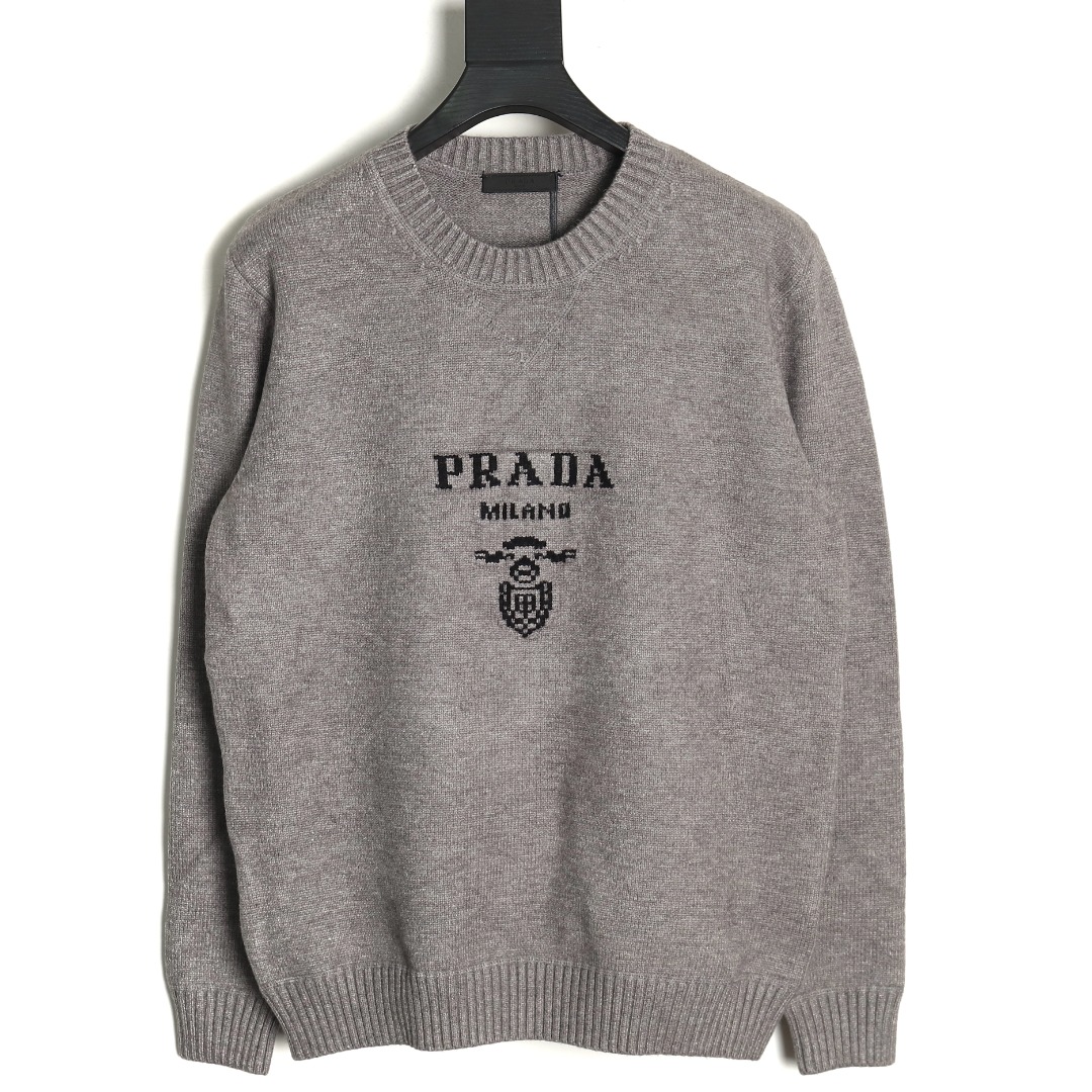 Prada Gray Sweater With Large Logo