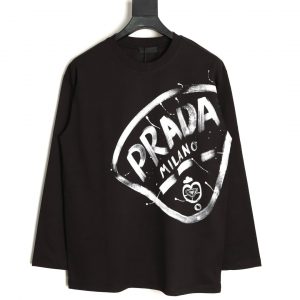 Prada Large Logo Ink Print Long-Sleeved T-Shirt Black