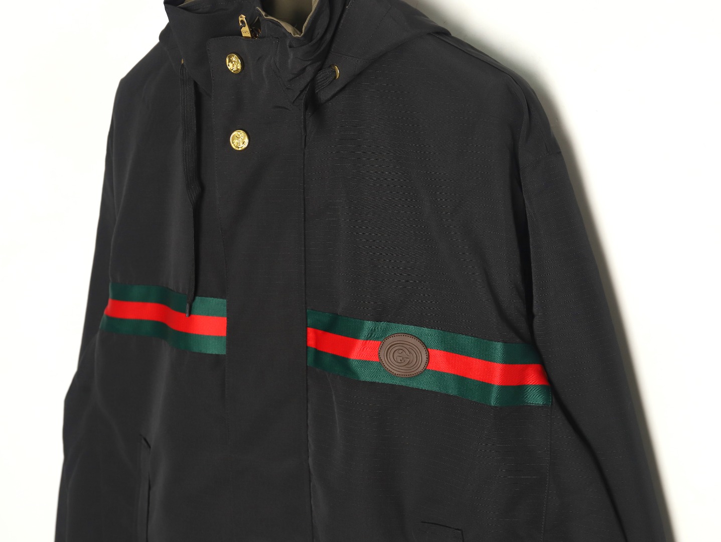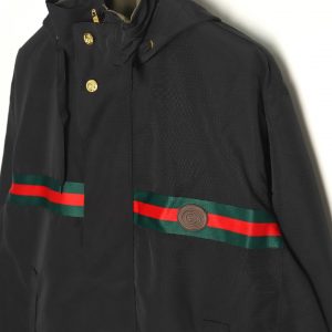 Gucci Black Double-sided Windbreaker Hooded Jacket With Red And Green Straps