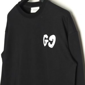 Gucci Hand Painted Graffiti Letters Logo Crew Neck Sweatshirt Black
