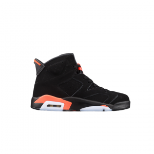 The 2019 edition of the Air Jordan 6 Retro ‘Infrared’ is true to the original colorway, which Michael Jordan wore when he captured his first NBA title. Dressed primarily in black nubuck with a reflective 3M layer underneath, the mid-top features Infrared accents on the midsole, heel tab and lace lock. Nike Air branding adorns the heel and sockliner, an OG detail last seen on the 2000 retro.