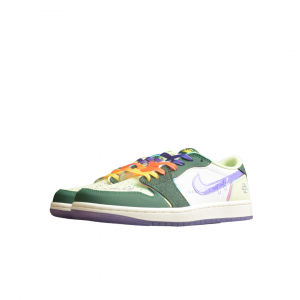 Designed by Riddhi Mahajan, the Air Jordan 1 Retro Low OG represents one of six footwear styles that make up Nike’s Doernbecher Freestyle XVIII collection. The classic low-top showcases vibrant hues that reflect Riddhi’s sunny worldview. Denoting the colors of a sunrise, ombre laces secure the leather upper, featuring lush green overlays, white quarter panels, and a violet Swoosh. ‘Radiate Positivity’ is printed across the lateral midfoot, while ‘Brand New Day’ is inscribed on the fluorescent green toe box. Underfoot, a translucent purple rubber outsole reveals Riddhi’s name and a daisy graphic.