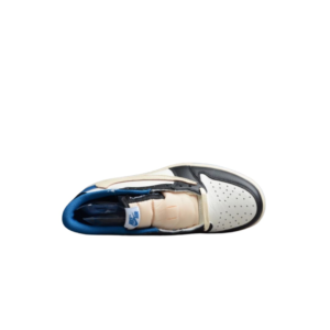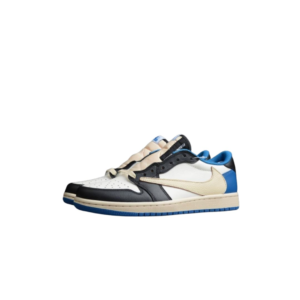 The Fragment Design x Travis Scott x Air Jordan 1 Retro Low delivers a collaboration that blends signature details associated with both La Flame and Hiroshi Fujiwara?s influential imprint. The color palette is reminiscent of past Fragment joint ventures, highlighted by a white leather upper with contrasting overlays in black and royal blue. Scott?s inverted and oversized Swoosh decorates the lateral side panel in an off-white finish, while a standard black Swoosh is stitched onto the opposite side. Cactus Jack branding adorns the heel tab of the left shoe, along with the rapper?s smiley face logo stamped directly underneath. On the heel of the right shoe, a classic Jordan Wings logo is joined by Fragment?s lightning bolt trademark.