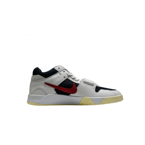 The Jordan Jumpman Jack TR ‘University Red’ dresses Travis Scott’s debut signature shoe with a black canvas upper, contrasted by off-white tumbled leather overlays and a color-matched midfoot strap. A red Jumpman logo decorates the tongue, matching the backward suede Swoosh on the lateral side. The Cactus Jack face logo registers an appearance on the back heel. Underfoot, ‘Jack’ is inscribed on the cream-hued rubber outsole in oversized red lettering.top the tongue and the Cactus Jack face logo stamped on the back heel. A grippy gum rubber outsole with a wear-away “Jack” wordmark wraps up the sidewalls of the white foam midsole.