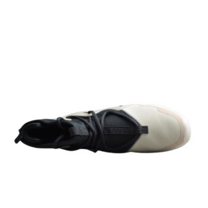 The Air Fear of God 1 ?Black? is one of the inaugural colorways of the performance basketball shoe made in collaboration between Nike and Jerry Lorenzo?s Fear of God. The fashion-forward silhouette uses a brand new last made expressly for the specific model, topped with a minimalist black leather upper with a TPU cage inspired by the Huarache Light. The tooling takes the form of a contrasting white cup sole with a visible double-stack Zoom heel unit.