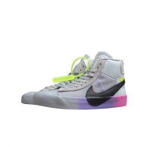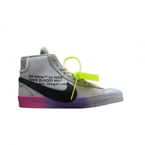 Serena Williams is arguably the greatest tennis player of all time, so why not embody greatness and cop the Nike Blazer Mid Off-White Wolf Grey Serena ?Queen?. The florescent colorway comes with a wolf grey upper, black ?Swoosh?, and a color gradient sole that goes from purple to platinum.