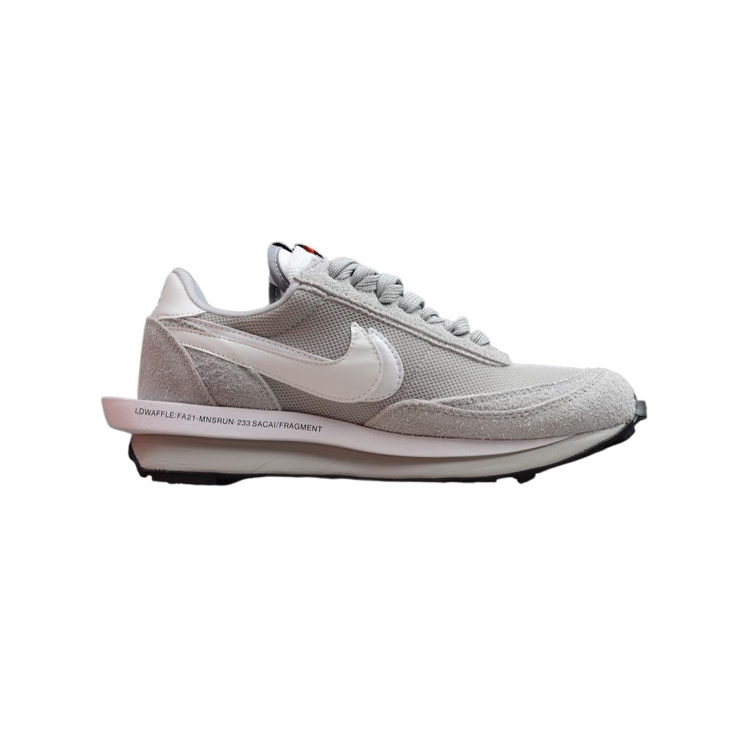 The Fragment Design x sacai x Nike LDV Waffle ?Light Smoke Grey? brings together Chitose Abe and Hiroshi Fujiwara on a three-way sneaker collaboration that borrows elements from the Nike LDV and Waffle Racer. In keeping with sacai?s signature aesthetic, the upper is crafted from grey mesh with double-stacked tonal suede overlays along the forefoot, heel and eyestay. The white leather Swoosh, laces and tongue are similarly doubled up, with the latter featuring Nike and Fragment woven tags. Additional branding includes printed text on the elongated foam midsole that reads ?The Classic / Fragment: sacai.? Underfoot, a waffle-traction rubber outsole delivers reliable grip.